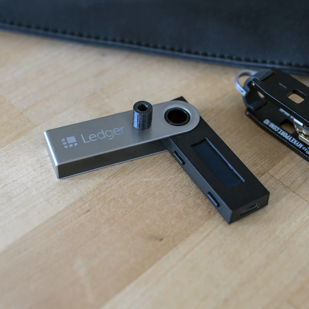 The Ledger Nano S Adapter reduces the large hole in the Ledger Nano S and Nano S Plus so it fits perfectly in the Keyport Pivot. Simply press it in, and you're ready to add your Nano S to your key stack. When you add a Ledger Nano S or Nano S Plus to your Pivot 2.0, you can fit up four keys and/or tools along with it.